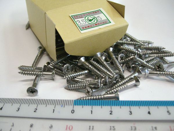ステンレス製のビス。サビないので色々な所で利用可能。sus.430 ステンレス(十字穴)木ネジ 3.5×25mm 1本 価格: 8円 レビュー評価:0.0 レビュー数:0 ステンレス(十字穴)木ネジ 材 質 ステンレス SUS.430 サイズ 3.5×長さ25mm その他ビス・釘等はこちらから バラ売り 2.4×13mm 2.7×16mm 3.1×20mm 3.5×25mm 3.8×32mm 4.5×38mm 4.5×45mm 4.5×50mm 箱売り 2.4×13mm 2.7×16mm 3.1×20mm 3.5×25mm 3.8×32mm 4.5×38mm 4.5×45mm 4.5×50mm Supported by 楽天ウェブサービス |